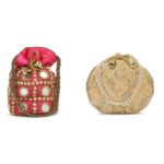 Combo – Designer Embroidered Potli Bag – Golden & Pink