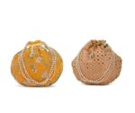 Home W_Bags Potlis PK 2 Combo – Designer Embroidered Potli Bag – Yellow & Beige