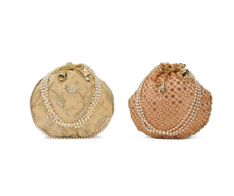 Combo of Two Beige Color Designer Embroidered Potli Bag